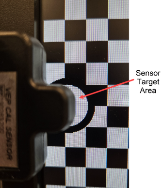 Calibration Sensor positioned over the sensor target on the left side of the monitor.